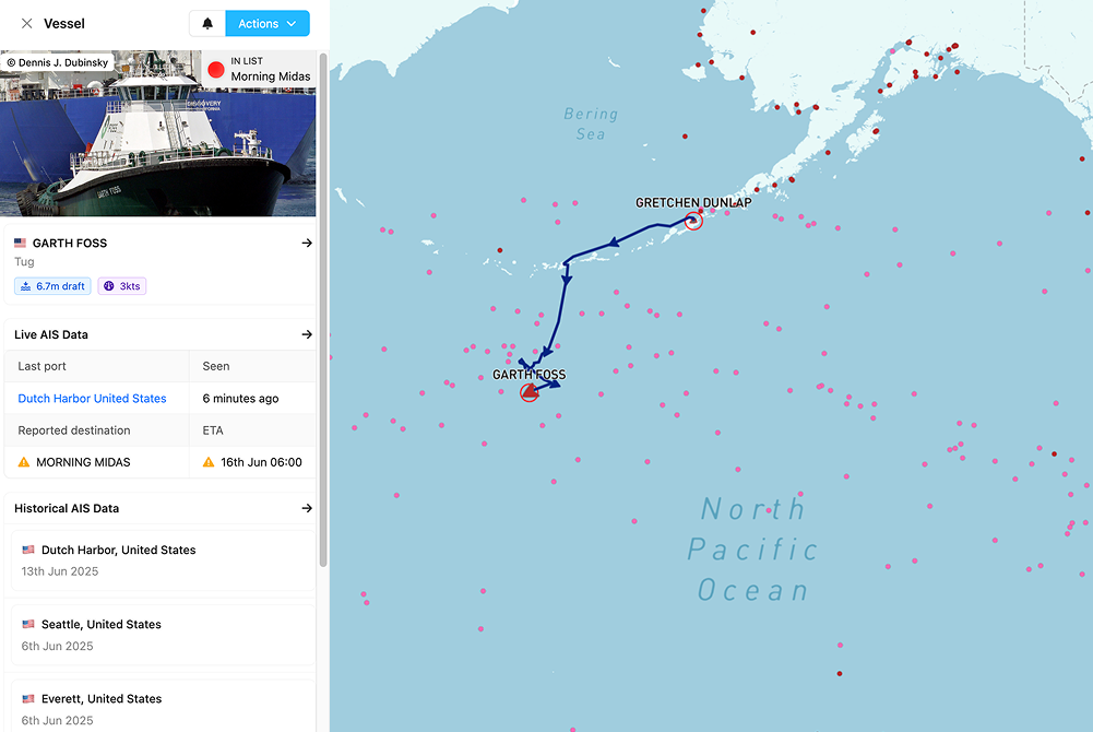 Just one week before the sinking, salvage teams reported no signs of ongoing fire aboard the vessel. The specialized firefighting tug Garth Foss (IMO: 9070266) had taken over operations on June 15 from Gretchen Dunlap (IMO: 9804021) , which had been on scene since June 9.
