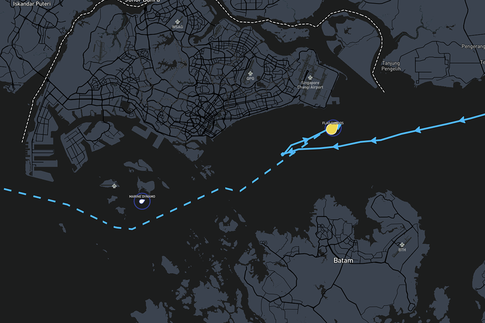 The Marine Dynamo—an 8,270 dwt hybrid bunker barge operated by V-Bunkers—was involved in the collision with the Malta-registered bulker Flag Gangos, which has a deadweight tonnage of 56,526. The incident occurred about five nautical miles offshore, near Tanah Merah.
