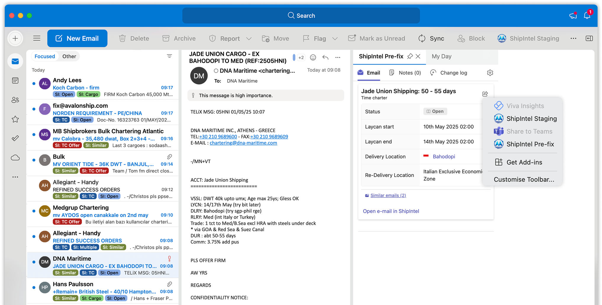 The Outlook add-in saves you hours by automatically reading, organizing, and extracting key information from your emails — helping you quickly identify relevant cargoes, TC in/out opportunities, and COAs worth focusing on.