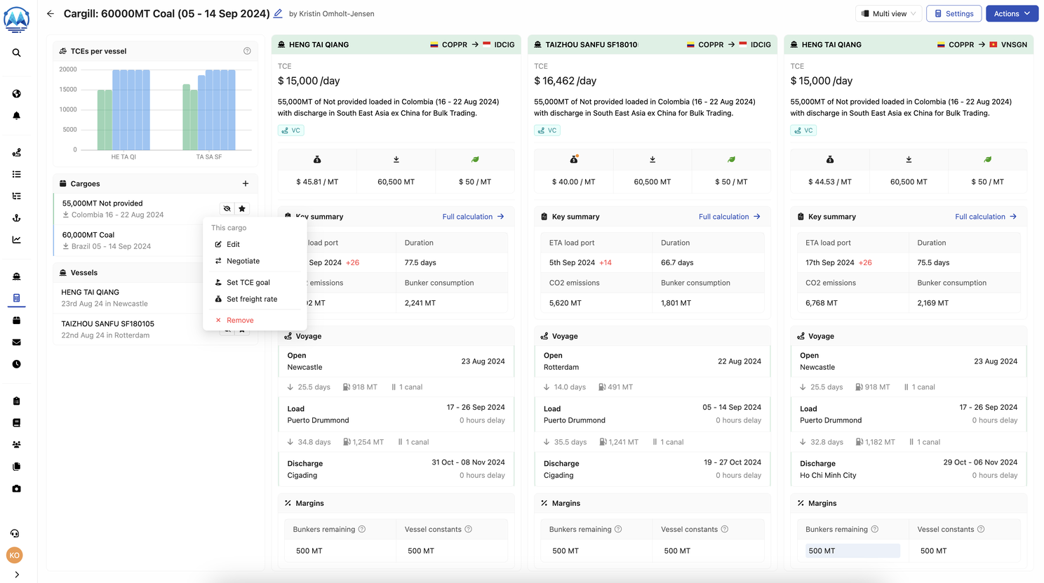 ShipIntel has a totally new design on Pre-Fix & Compare, a powerful e-mail management, parsing and tracking system. With ShipIntel you get it all; AI driven AIS features where you can search for live information and get alerts, find expected congestion in ports, and predict where vessels will sail and which ports they are heading towards, combined with AI driven email parsing and alerts when new cargoes have been received or when a colleague has started calculating or negotiated on the cargo, and whether it was fixed or fixed and failed.