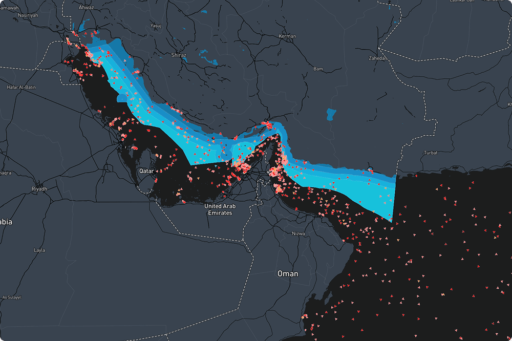 Track vessel traffic in the Strait of Hormuz using ShipAtlas or ShipIntel by Maritime Optima.