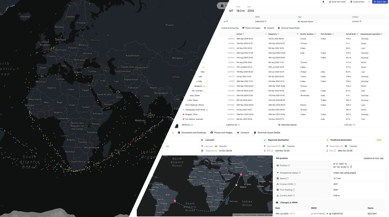 You and your team will be able to access different type of data that is related to any vessel or port with one click in the map or a search for a vessel or port, so you and your colleagues will save hours each day searching for information related to ports and vessels that is critical to have to make daily qualified decisions. It will also help you to utilise the benefits of Maritime AI tech.