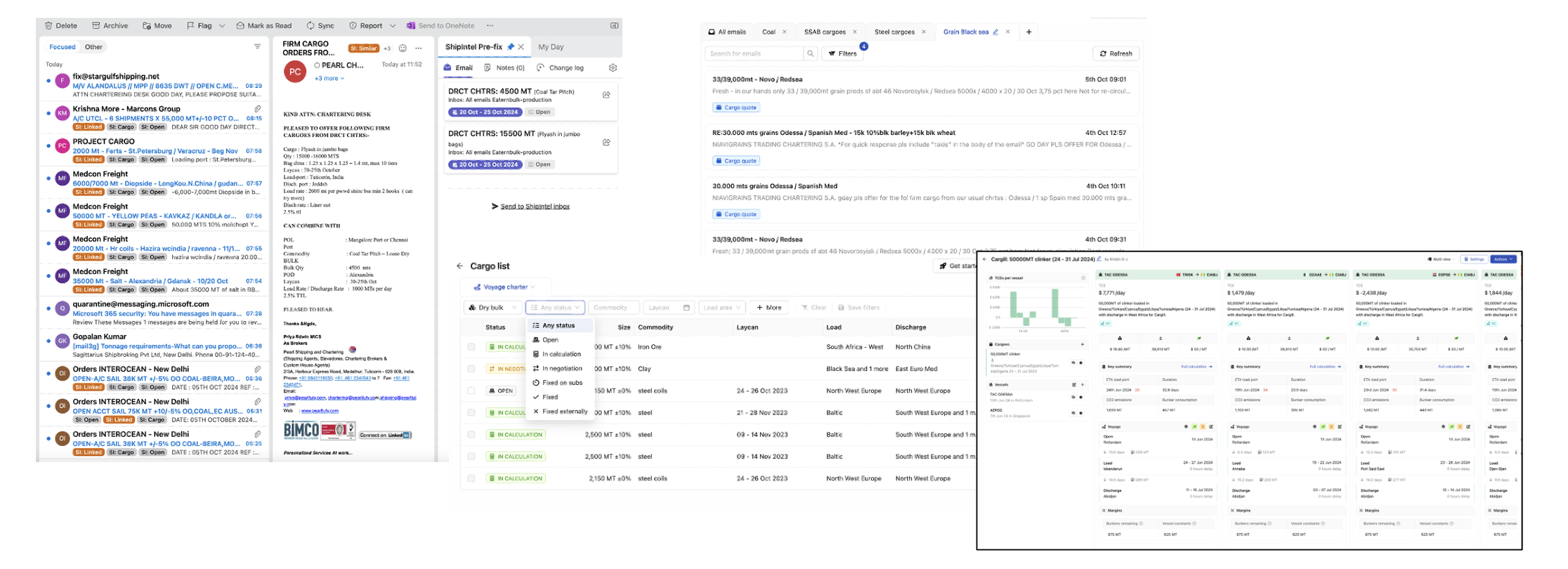 If you are involved in commercial shipping / chartering of cargoes and vessels for a shipowner or cargo owner, or if you are a ship broker, you will, by combining your Microsoft Outlook with ShipIntel get a maritime AI driven decision support system built on recognisable workflows helping you save hours each so you have more time to be proactive.